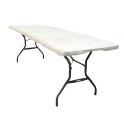 Final Rental Price on this item. These tables offer functionality at an unbeatable price. They are Rectangular Tables made from Plastic and Metal, measuring 8-FT (96”x30”x29”).