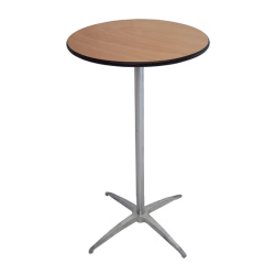 The Cocktail Round Table features a bar-height steel column and a sturdy plywood top. The table base is also steel. This table can be disassembled, making it easy to be transported and stored. This is a very popular and high demand product! Commonly used in Weddings, Bars, Pubs, Corporate Events, Fundraisers, and Galas. This is a table that can easily be decorated to fit your color scheme and/or theme.