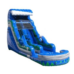 The 22 Ft Blue Crush Double Lane Water Slide with Slip and Slide is very steep and FAST. The water bounce house also has an oversized catch area at the bottom for extra safety. This larger slide has a big foot print so make sure you check your space available for set up. This water Inflatables dry slide is perfect for your home party, church, school, or company event for boys or girls. 22ft are ALL AGES rating so everyone can ride this slide! You asked for more slides... and you got 'em! Rated for kids and adults of all ages.