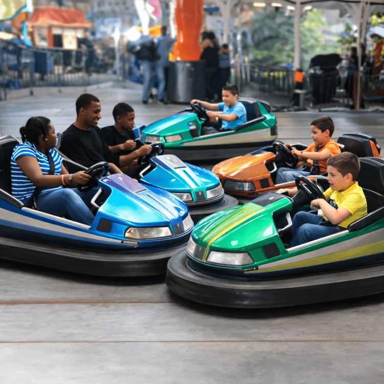 Each of the five bumper cars is easy to drive, and equipped with padded bumpers for safe collisions. The ride includes a custom inflatable or metal arena where drivers can maneuver freely and enjoy the classic joy of bumping into friends and family.