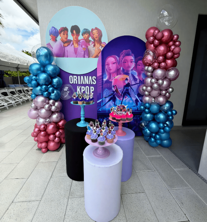 Planning a K-Pop Demon Hunters–themed party in South Florida? Get ready to turn up the energy with Kids Fairyland’s custom K-Pop Demon Hunters party decorations—where neon lights, bold stage vibes, and fierce K-pop style come together for the ultimate celebration. From dynamic backdrops to eye-catching details inspired by the hit Netflix series, our immersive setups will make your party feel like stepping straight into a live concert. Whether you’re hosting a birthday or a themed event, we’ll create an electrifying atmosphere where music, style, and fun collide—perfect for fans of all ages!