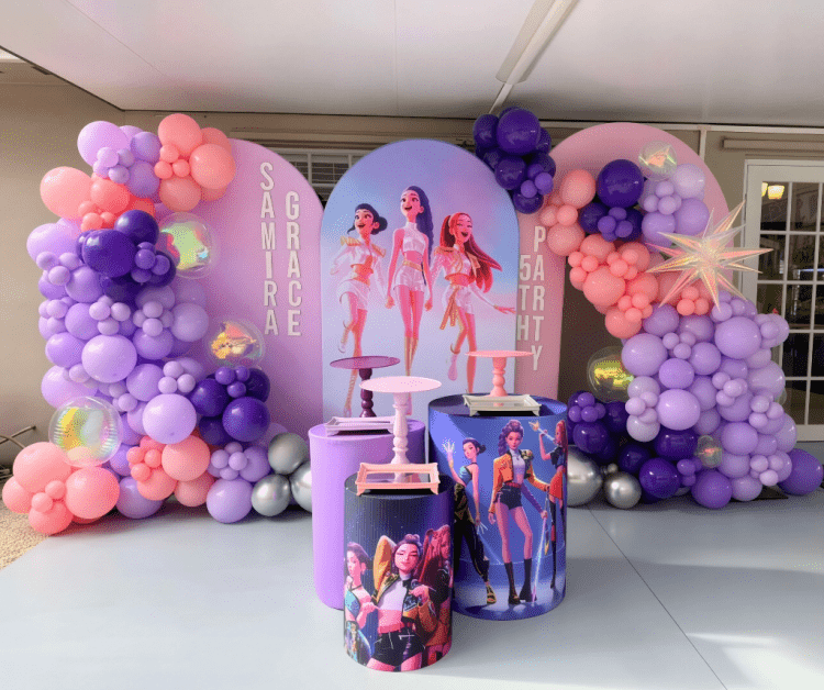 Transform your celebration into a dazzling K-Pop universe with Kids Fairyland’s vibrant Demon Hunters decoration packages. As a leading event decorator serving Miami, Broward, and Palm Beach, we bring the energy of Seoul’s neon streets to life with glowing balloon garlands, metallic details, stage-inspired props, and sleek backdrops that feel straight out of a music video.