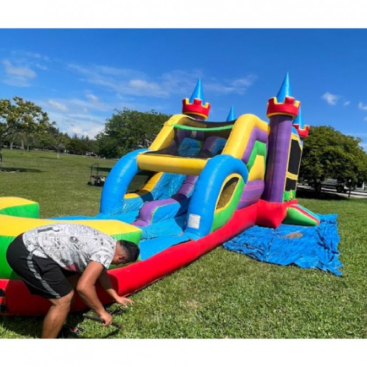 Fun to the max? Kids Fairyland offers you the best in inflatables to cool down these hot days and experience a spectacular summer. We have 4 In 1 Lucky Castle Module Combo Double Lane. The product will have your kids bouncing around all day. This fun, colorful and inflatable bounce house is made commercial-grade tough to take on endless hours of fun. Not just for bouncing, this bounce house includes a basketball hoop, and slippery slide all encased in mesh for safety.